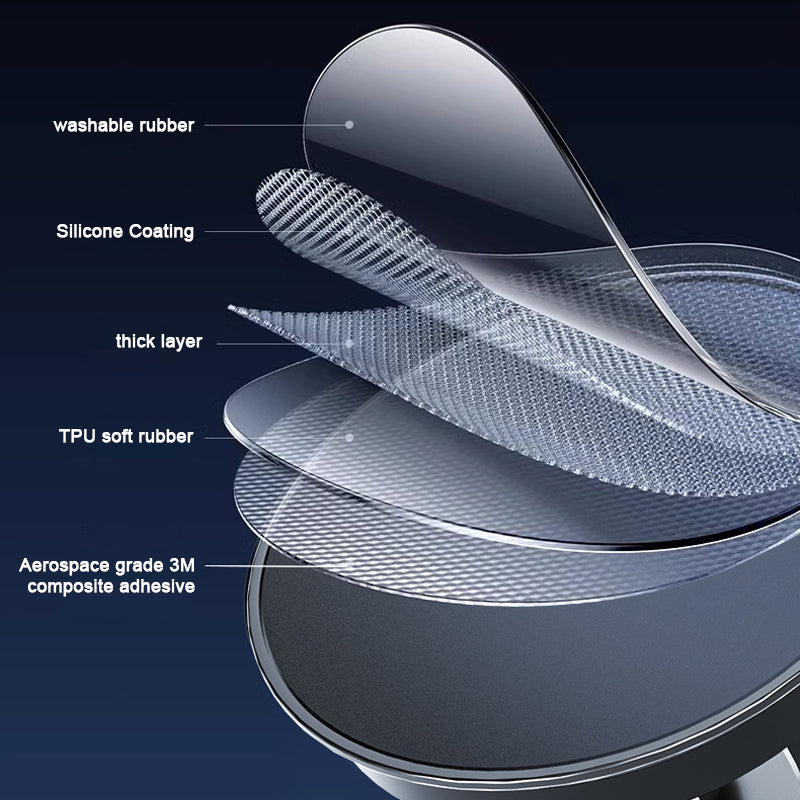 Die neue Basis aus Verbundmaterial passt sich jeder Oberfläche des Armaturenbretts an - egal ob flach oder uneben - ohne Rückstände zu hinterlassen. Wiederverwendbar, repositionierbar und mühelos.